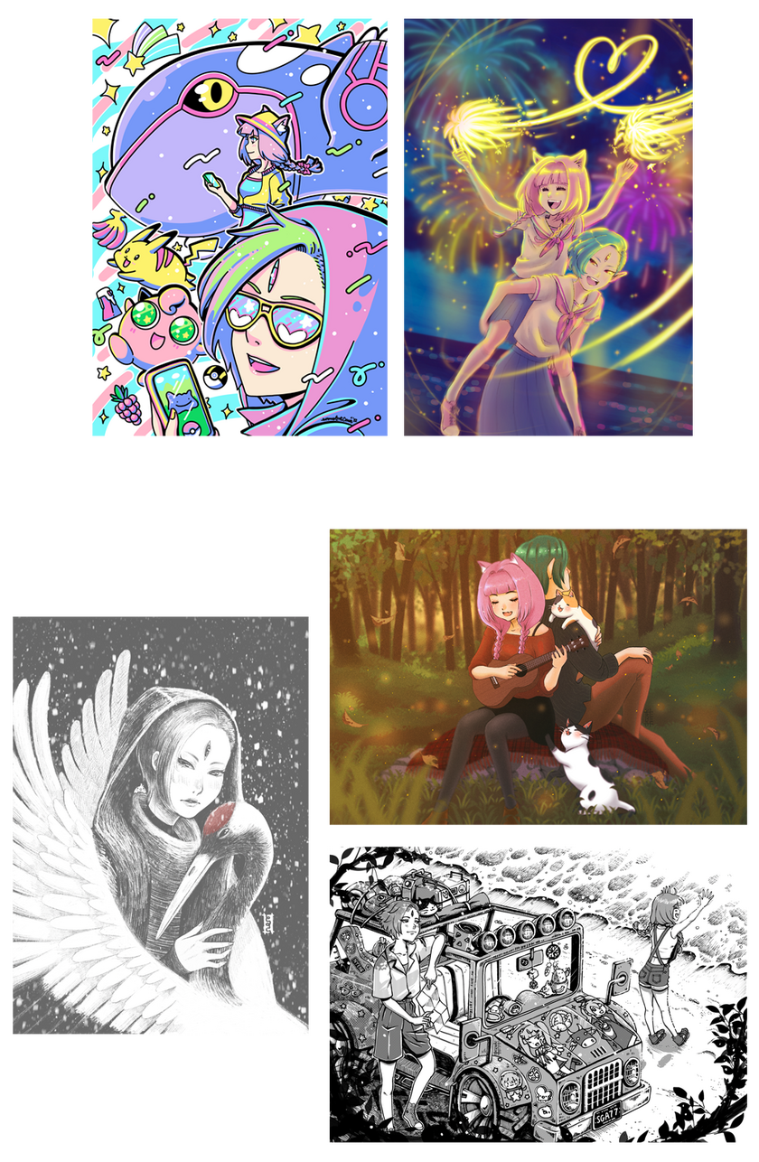 These are Evon's original characters, short hair girl is Yume and the one with cat ears is Momo.This set of 5 postcards consist of their adventures together, selected illustrations that Evon drew. 2 of these prints has shiny stars finishing.Thank you so much for checking them out and bringing them home. <3